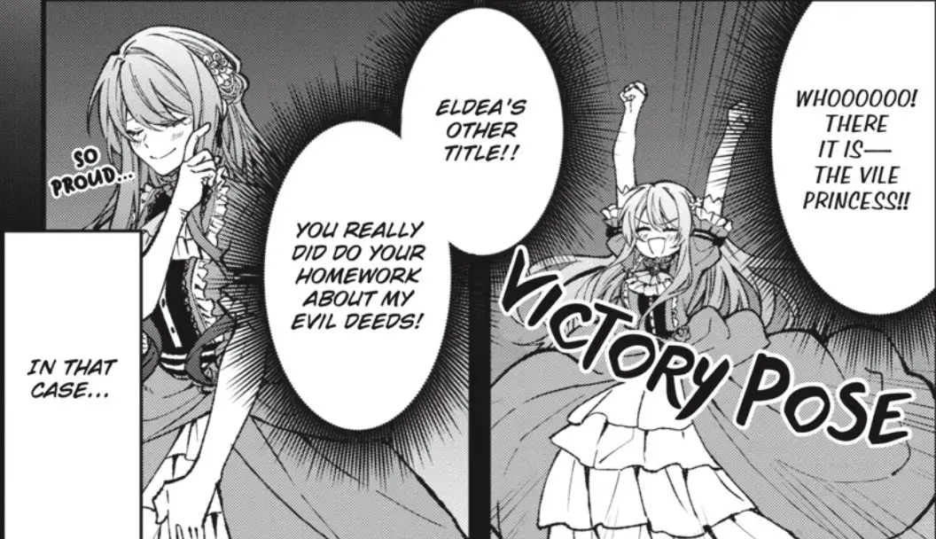 During the first volume, she gets to the final stages of acting as a villainess and can finally enjoy herself while living apart from the main story of the hero party. With all the riches she accumulated through multiple investments in the world’s industries, she can now follow them from afar and try to see the world for herself without worrying too much about her impact on the story she loves so much.