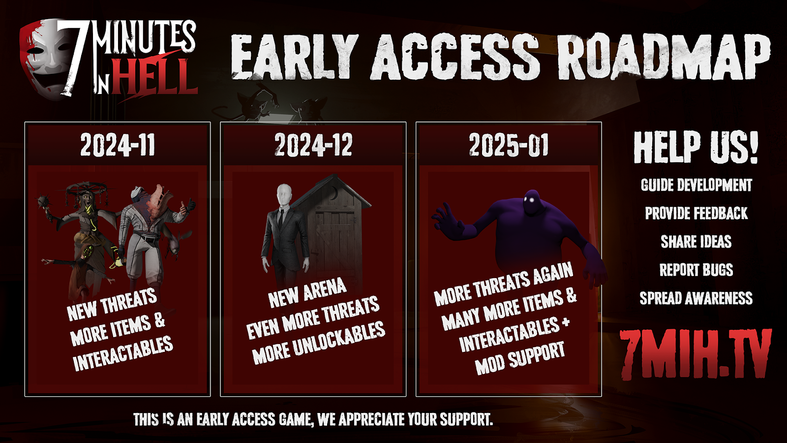 Following the release of Goose Goose Duck, the developer plans to continue balancing 7 Minutes in Hell throughout 2024. However, they do not have a specific time frame for launch. Still, that doesn’t mean they don’t have a roadmap. The team shared that players can expect new areas, characters, and enemies.
